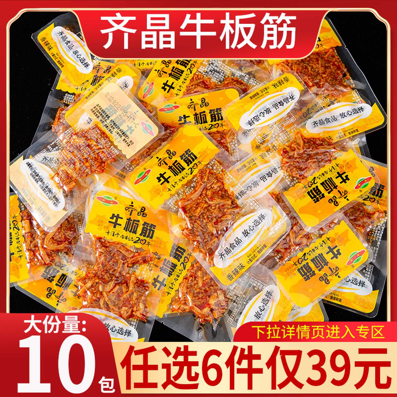 【39元6件专区】齐晶牛板筋小包装麻辣牛肉干熟食香辣即食零食