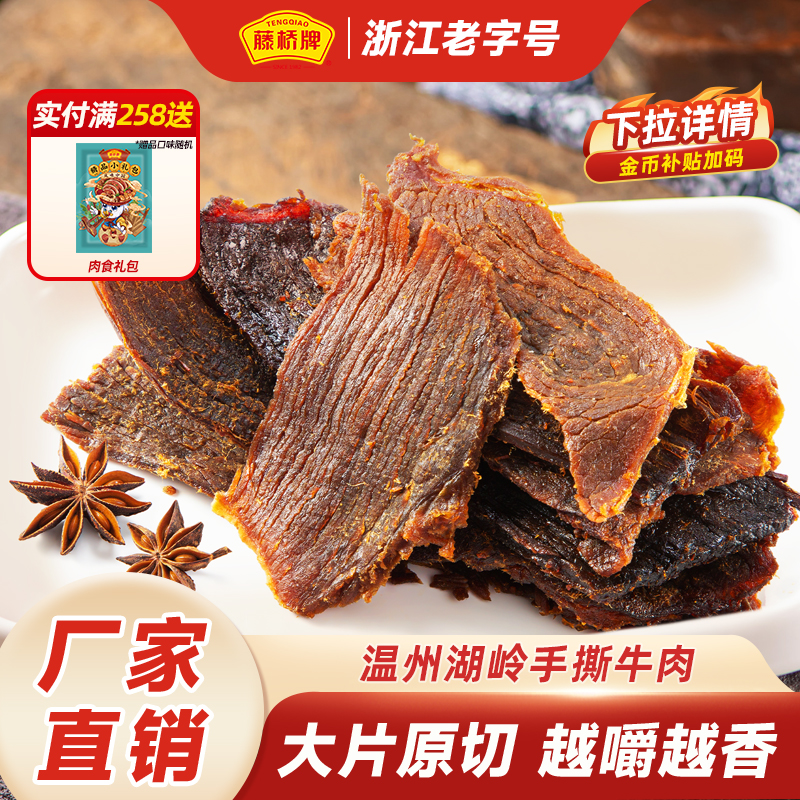 三关六码头温州特产湖岭牛肉干手撕酱卤黄牛肉大片熟食解馋零食