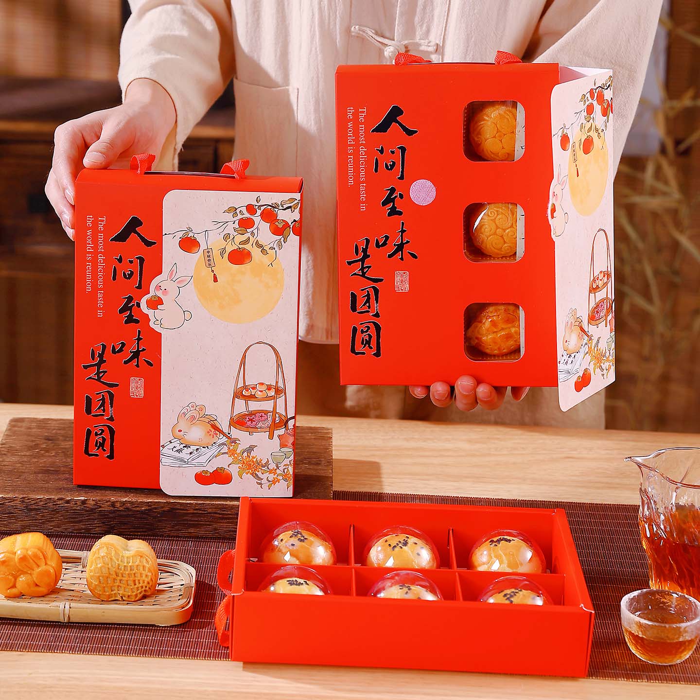 鲜肉月饼包装盒4粒6粒中秋月饼礼盒打包盒纸盒商用定制