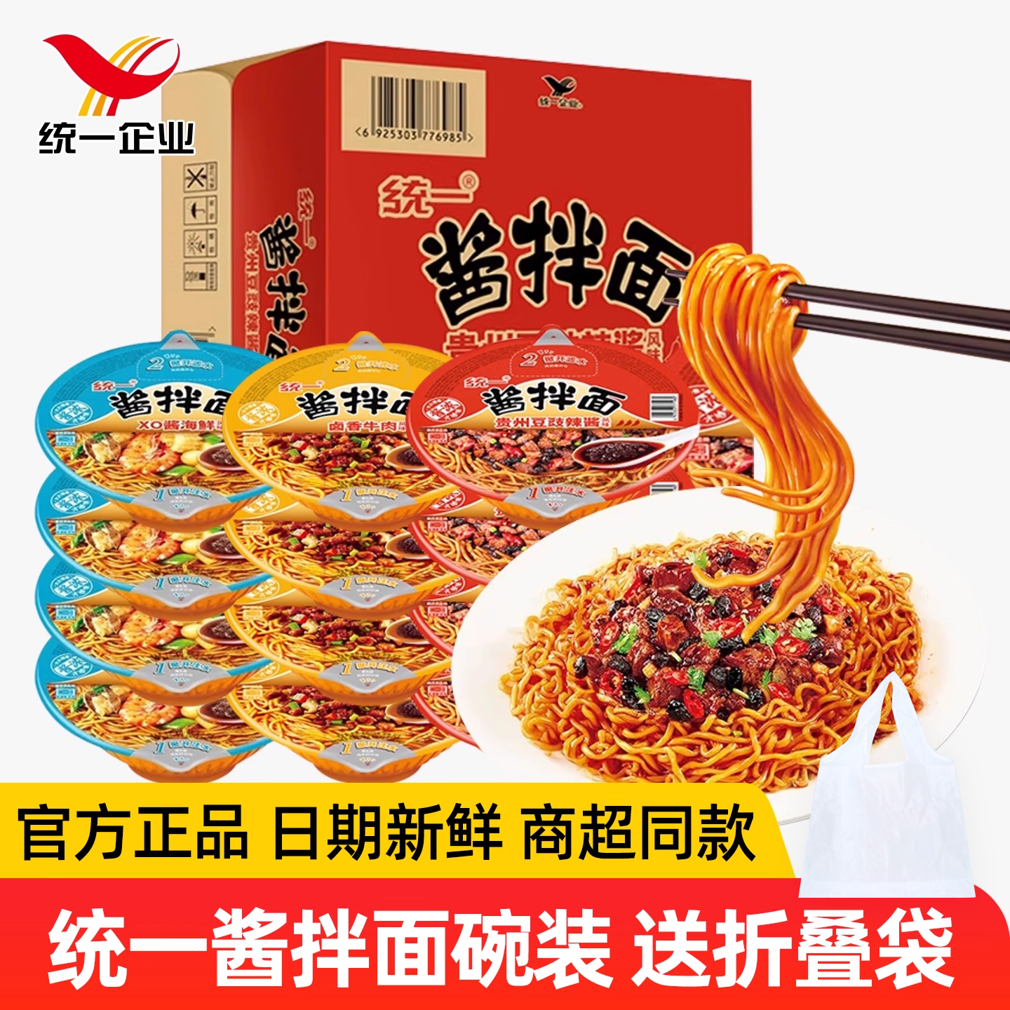 统一酱拌面12碗整箱装速食干拌面卤香牛肉贵州豆豉免煮冲泡面夜宵