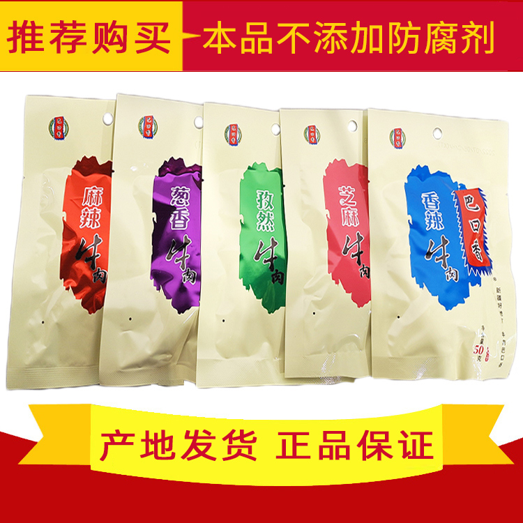 巴口香牛肉干新疆50g*10袋套餐酱卤麻辣香辣孜然葱香芝麻牛肉零食