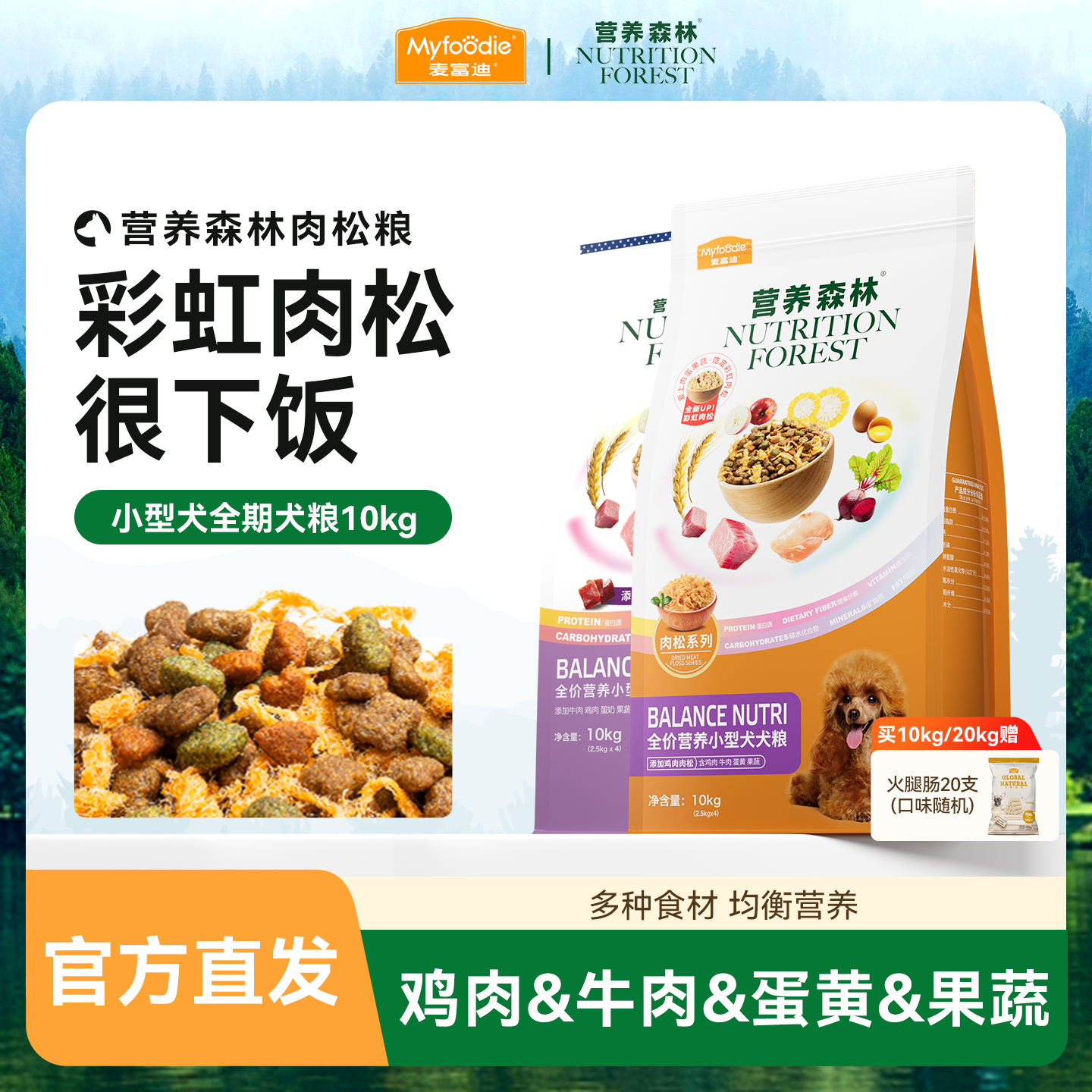 营养森林狗粮牛肉冻干肉松小型犬成犬幼犬泰迪全期犬粮10kg