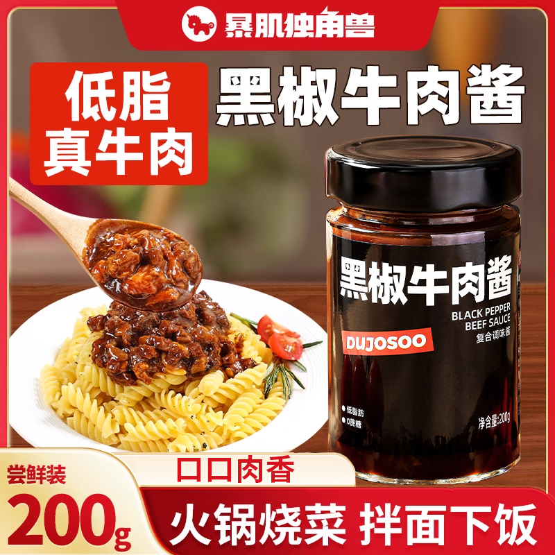 暴肌独角兽牛肉黑椒拌面酱代糖大颗粒夹馍下饭酱轻食健身调味料
