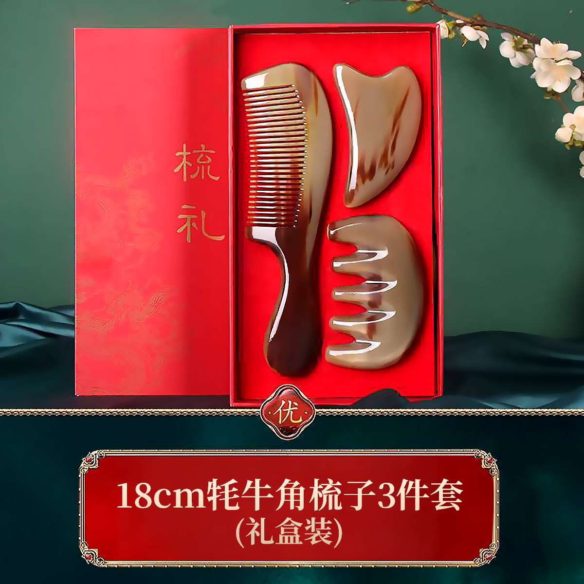 牦牛角梳子三件套三八节送女友老婆女生生日礼物送妈妈礼盒装