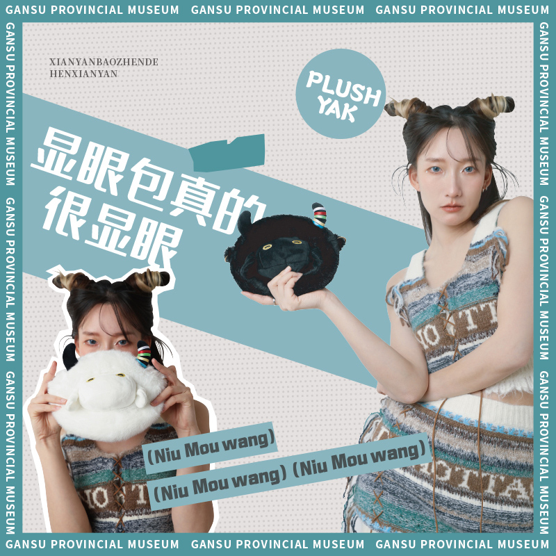 甘肃省博物馆文创毛绒包包女生黑白牦牛斜挎包手提包生日新年礼物
