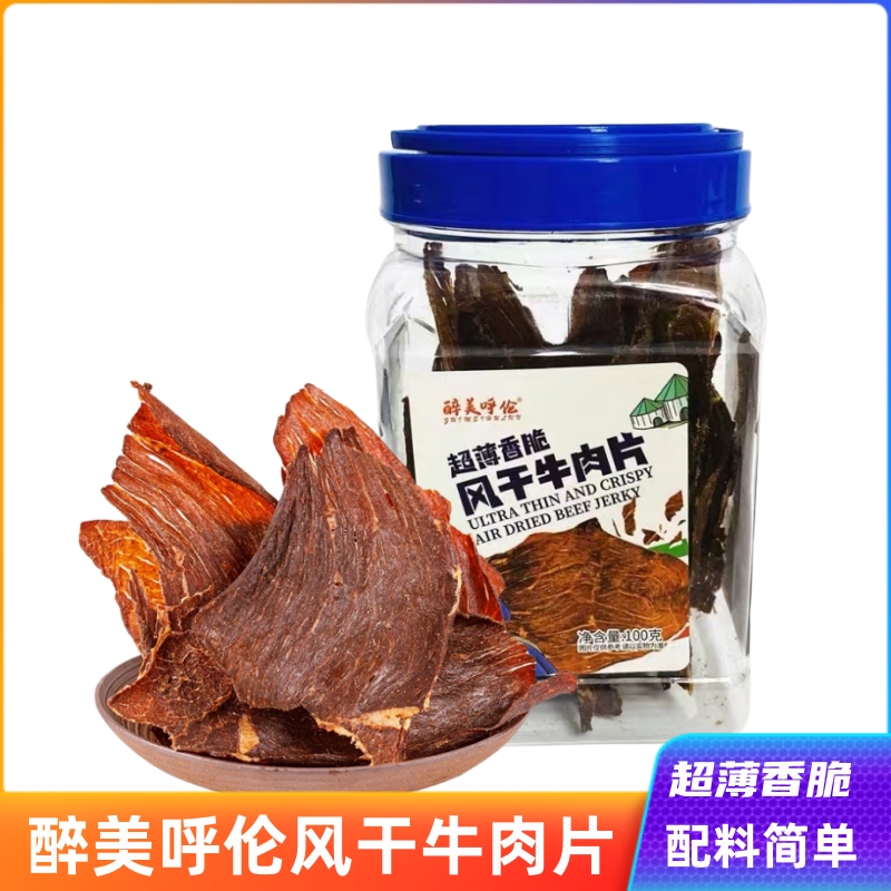 风干薄脆牛肉片内蒙特产香辣原味酥脆牛大片桶装100g休闲办公零食