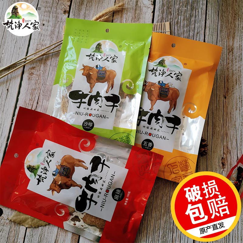 梵净人家牌牛肉干100g*3袋五香麻辣沙爹味贵州特产休闲小零食包邮