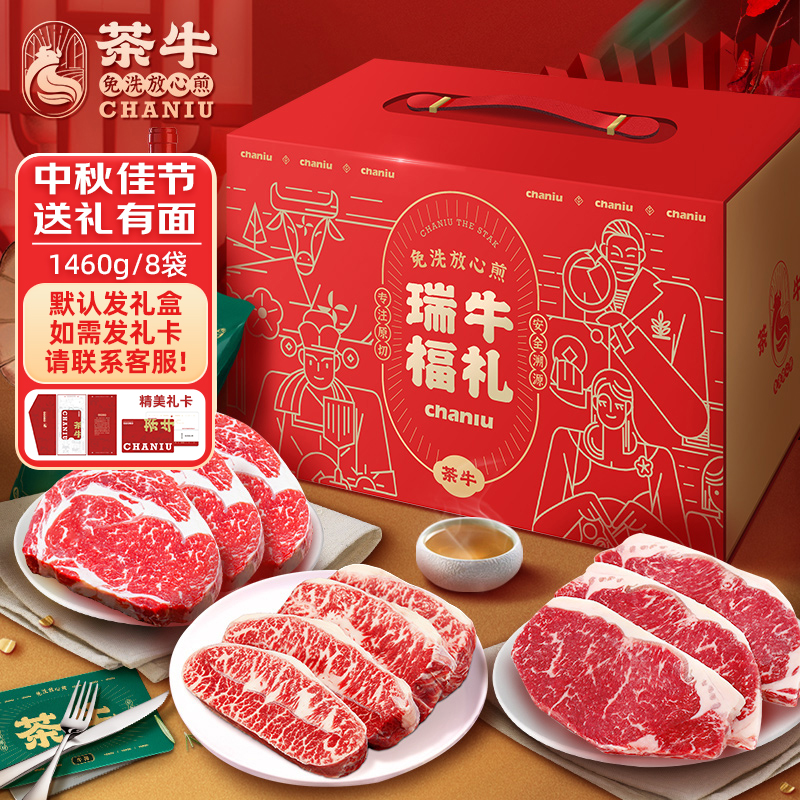 茶牛牛肉礼盒 洲进口谷饲原切牛排全家福1460g中秋礼品