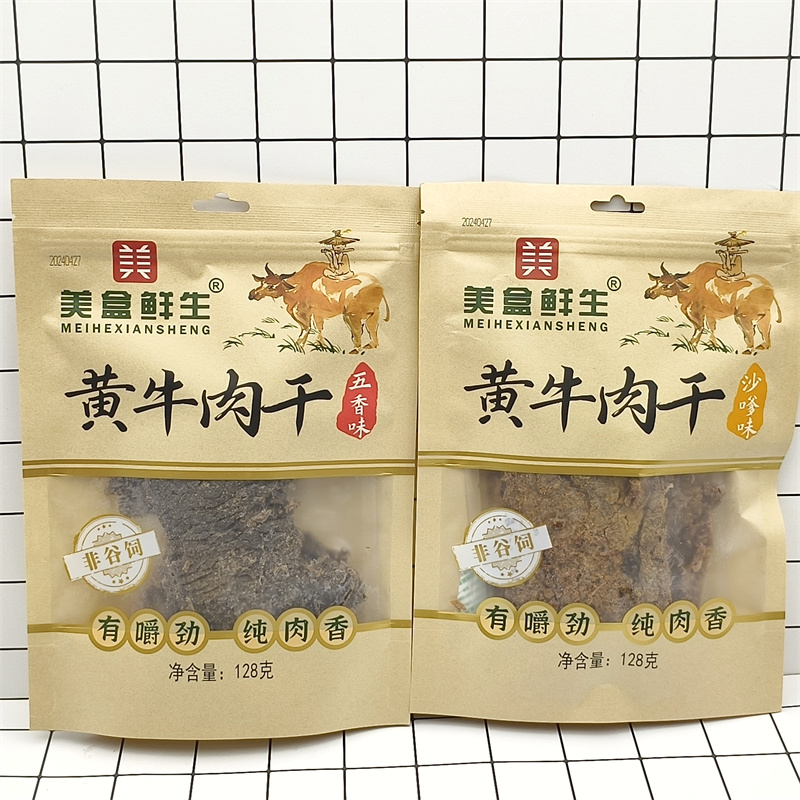 美盒鲜生黄牛肉干500g五香味沙嗲味有嚼劲纯肉香独立小袋称重包邮
