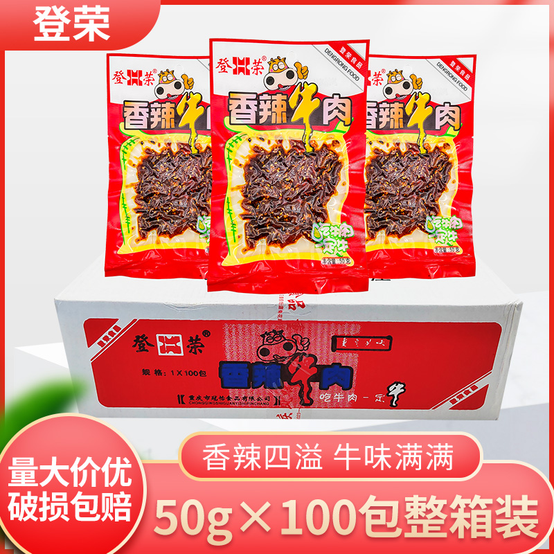 包邮登荣香辣牛肉50g*100袋整箱麻辣味零食小吃肉食重庆特产小吃