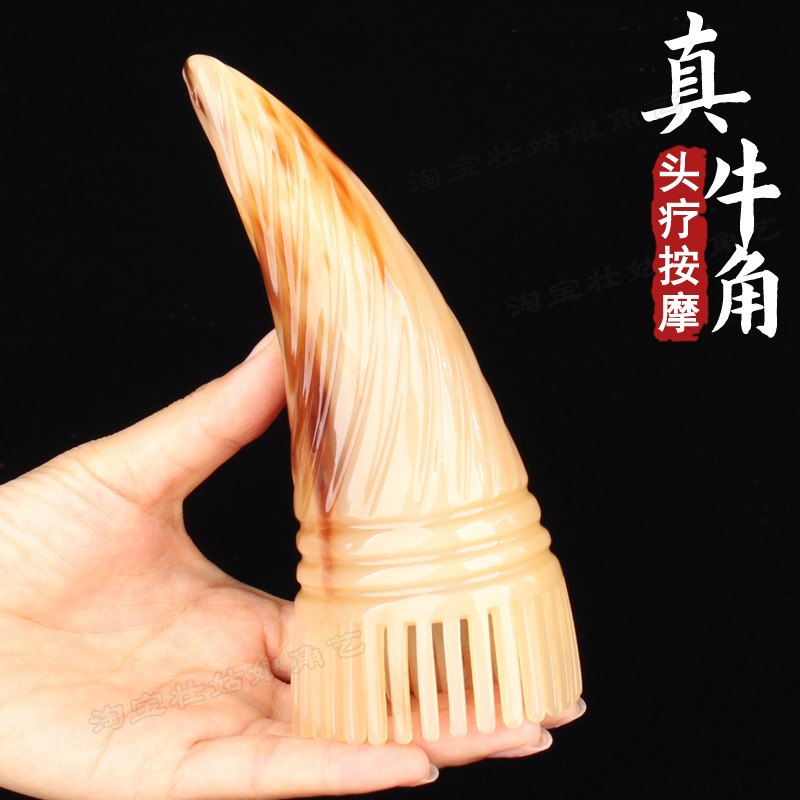 天然纯牛角五齿抓耙牦牛角,按摩头部牛角梳肩颈肩膀经络疏通白发