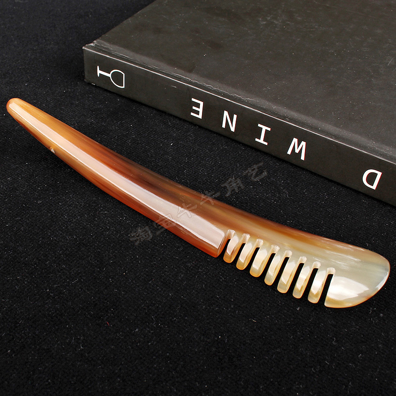 牛角梳纯天然牦牛角头疗梳细齿宽齿牛角梳半筒牛角头疗梳防头发梳