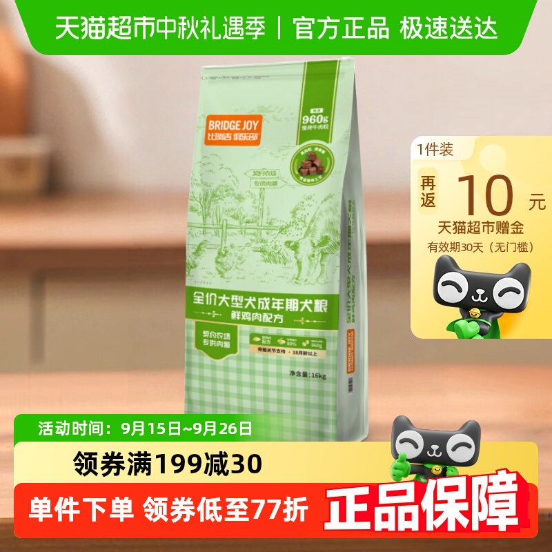 比瑞吉俱乐部大型成年犬粮金毛拉布拉多萨摩耶美毛补钙牛肉味16kg