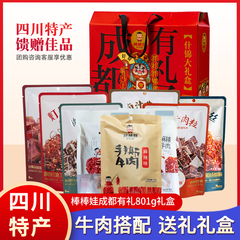 棒棒娃牛肉礼盒麻辣牛肉干灯影牛肉丝四川特产小吃零食大礼包564g