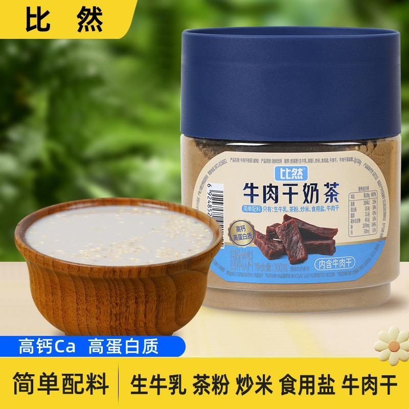 比然牛肉干奶茶罐装高钙高蛋白牛肉干茶粉好配料无负担炒米