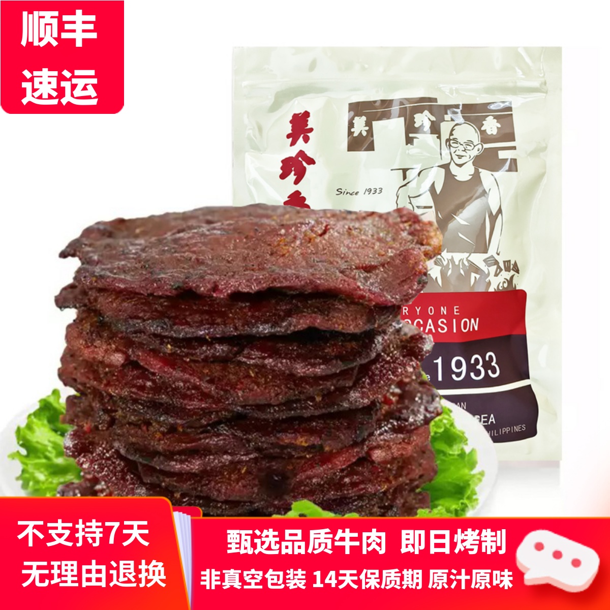 美珍香切片烧烤牛肉250g/袋非真空包装类零食品小吃吸油纸袋包装