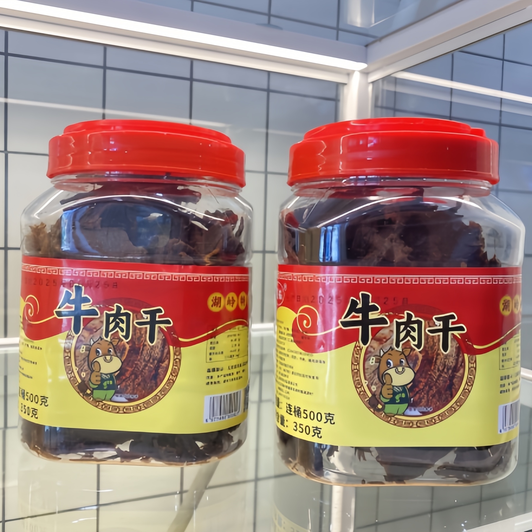 包邮温州特产零食品湖岭牛肉干 厨工手撕黑牛肉片桶装含桶重500克