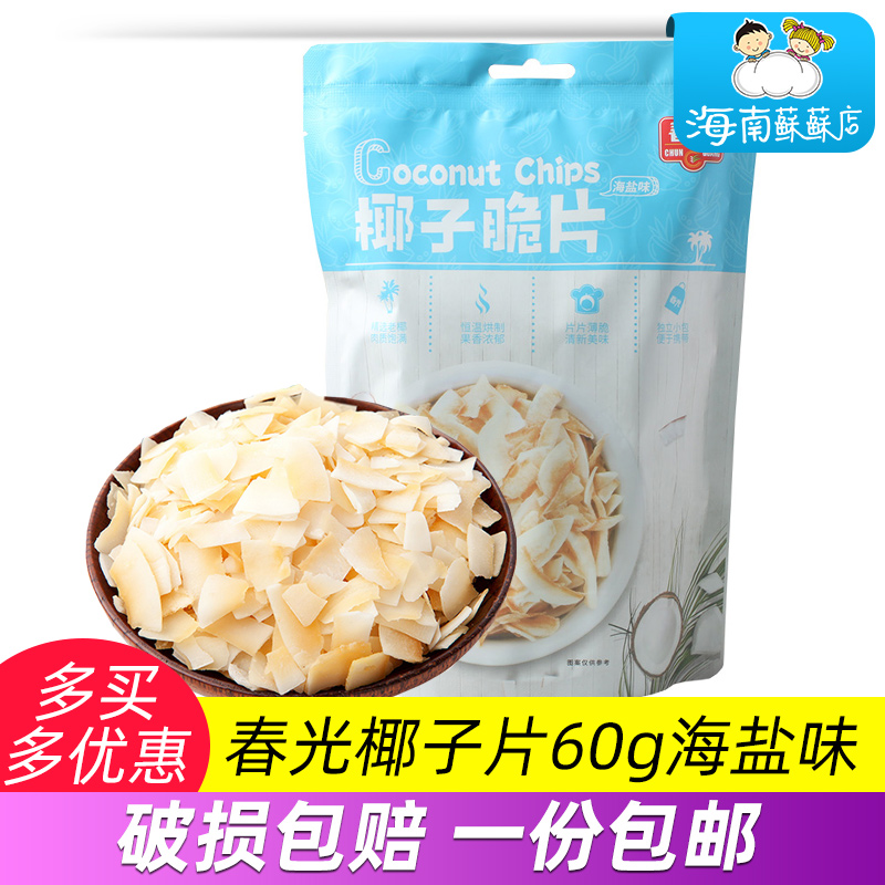 春光海盐味椰子脆片60克X2包海南特产椰子片果脯椰子肉干(袋装)