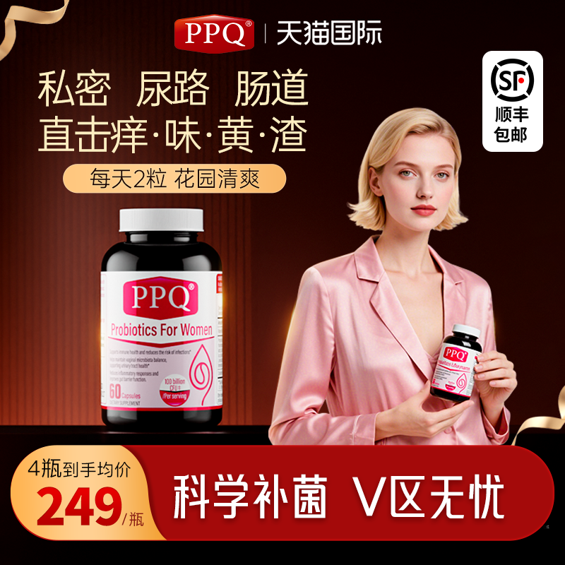 美国PPQ女性私护益生菌胶囊调理免疫乳酸杆菌蔓越莓私处妇科女士