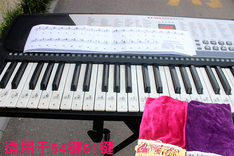 包邮电子琴键盘贴54键61键88键透明五线谱简谱键位贴防水钢琴贴纸