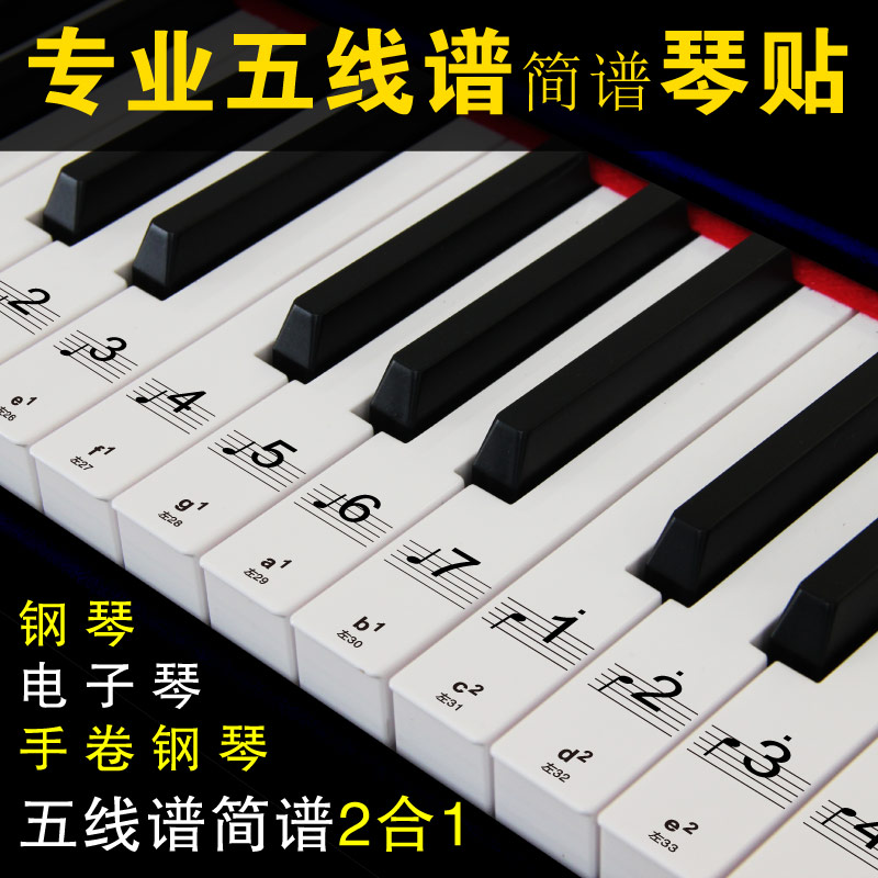 包邮电子琴键盘贴54键61键88键彩底五线谱简谱键位贴防水钢琴贴纸