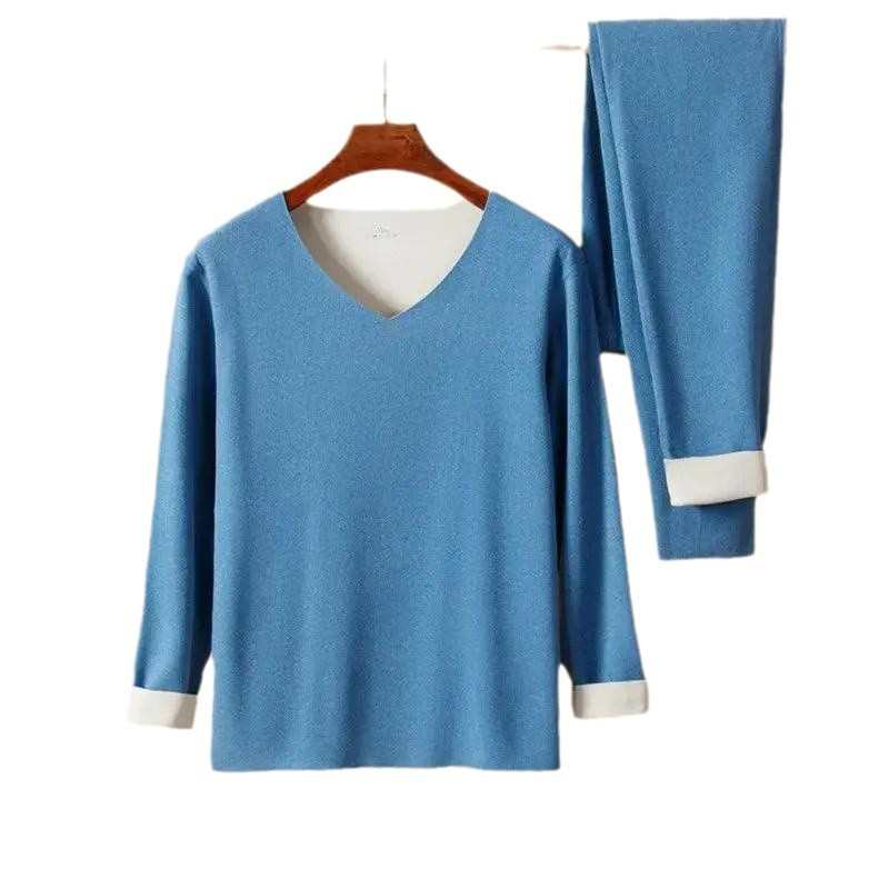 秋冬V领保暖内衣套装男薄款弹力紧身秋衣秋裤双面磨毛长袖打底衫