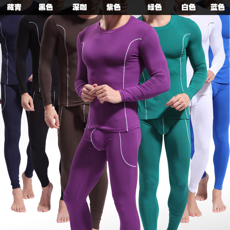 秋冬新款薄款紧身男士保暖内衣套装莫代尔柔软高弹力圆领性感中腰
