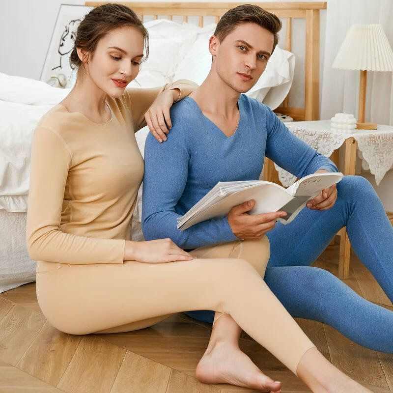基达保暖男内衣薄款莫代尔发热单件秋衣裤超薄女紧身弹力打底套装
