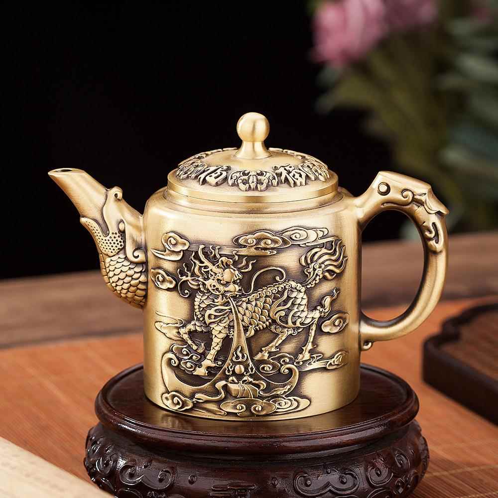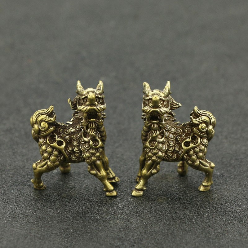 黄铜麒麟桌面摆件瑞兽铜雕国潮工艺品摆饰文玩茶宠收藏老铜器