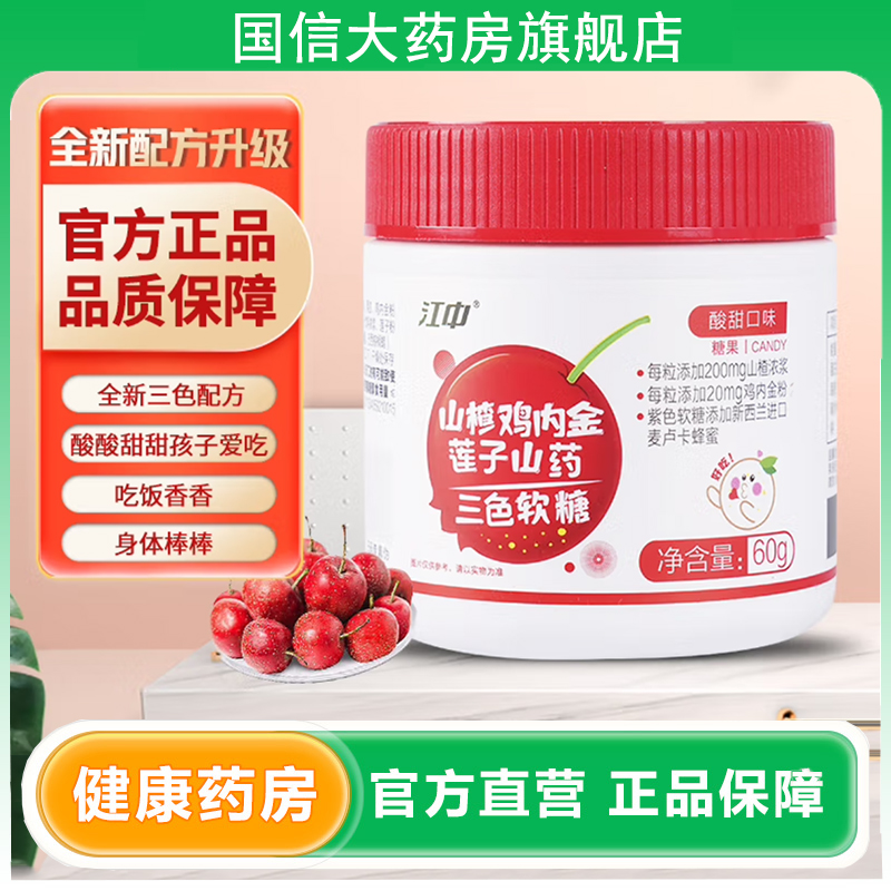 江中山楂鸡内金软糖莲子山药三色酸甜口味咀嚼软糖正品旗舰店7kk