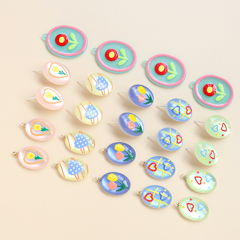 糖果色树脂亮面可爱花朵吊坠挂件手工diy包链手机链钥匙扣配件