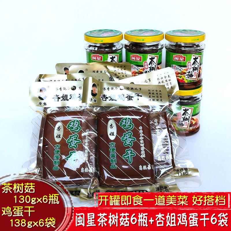 正品闽星油香茶树菇罐头130gx6瓶鸡蛋干138gx6袋方便搭配即食包邮