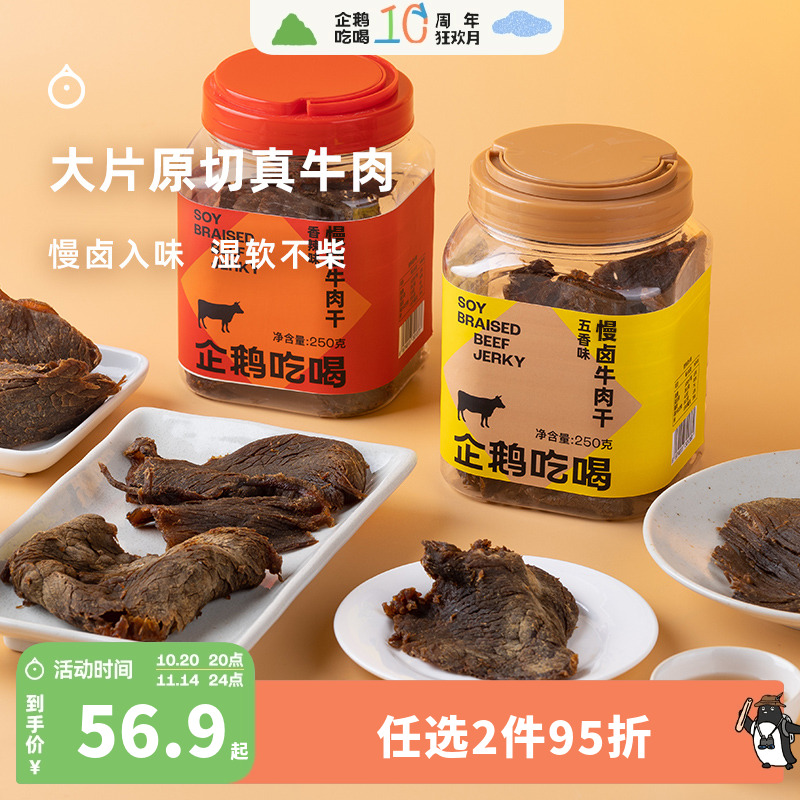 企鹅市集 慢卤牛肉干 浙江温州五香牛肉片肉干下酒小零食250g