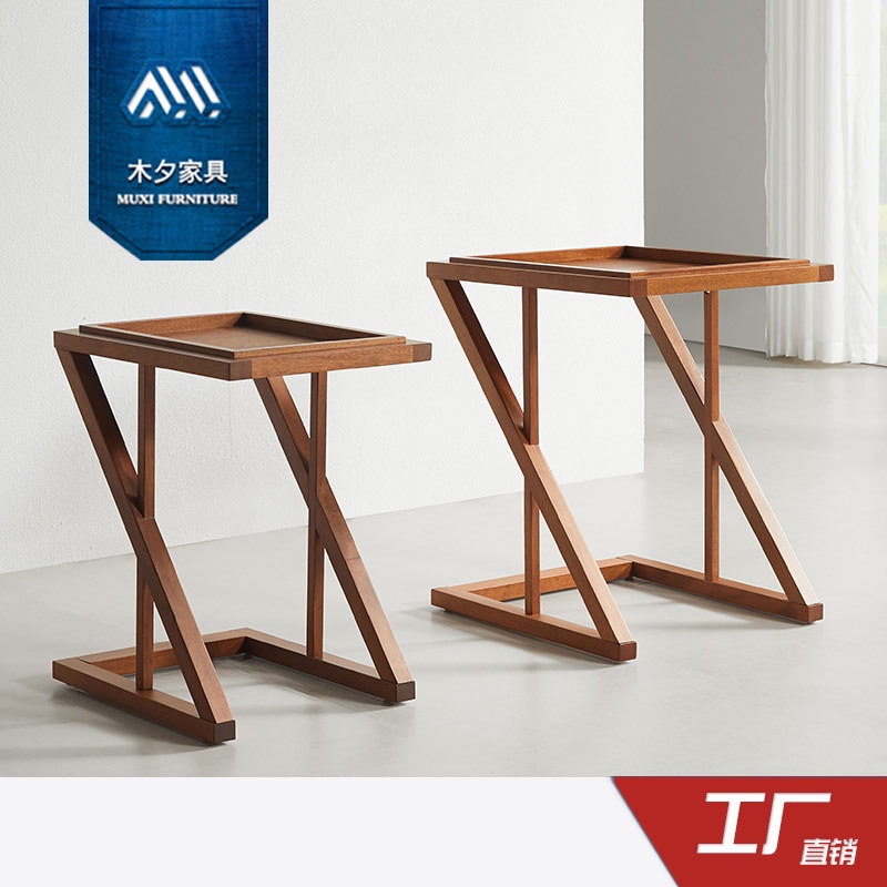 木夕现代新中式胡桃色实木家具Z形电话边几东南亚风格槟榔色角几