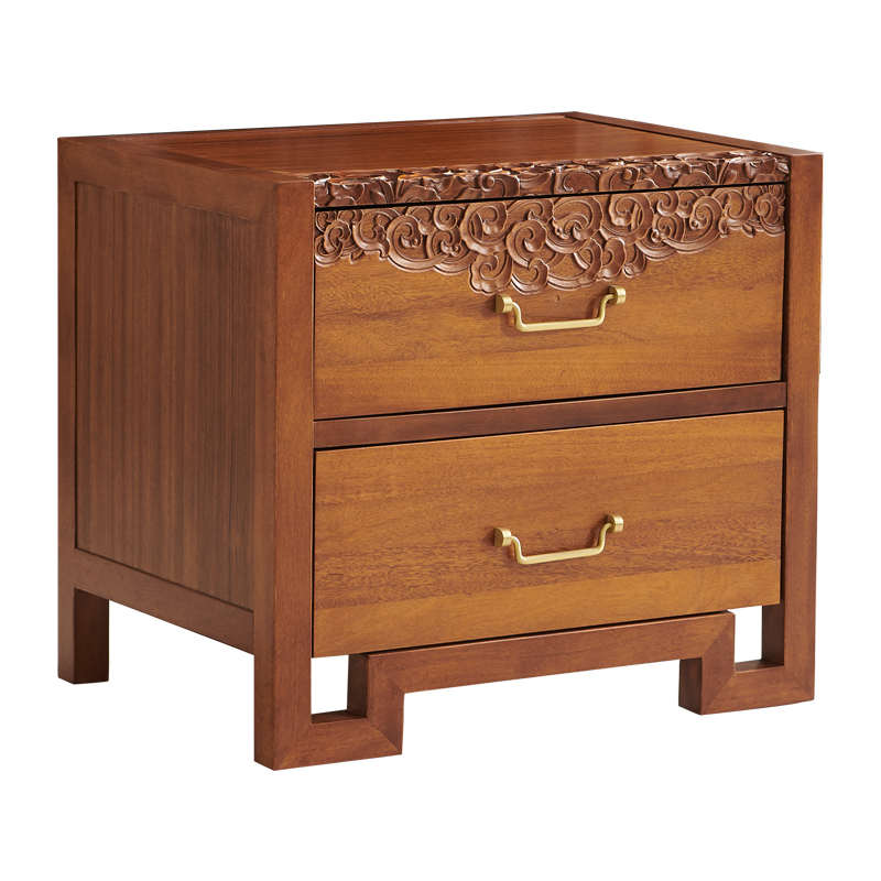 木夕东南亚风格槟榔家具新中式胡桃色实木床头柜雕刻双抽屉床头柜