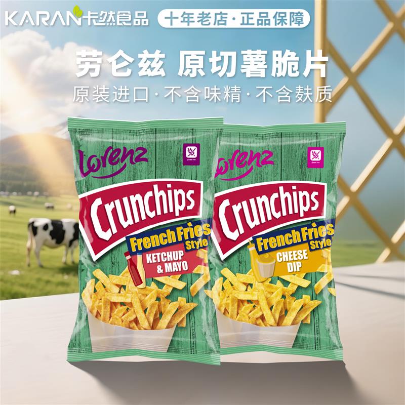 德国原装进口劳仑兹新款扁薯条宿舍追剧零食番茄味薯脆片芝士薯片