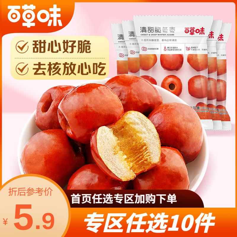 59元任选10件百草味-脆冬枣35g黄骅去核酥脆红枣干果干零食