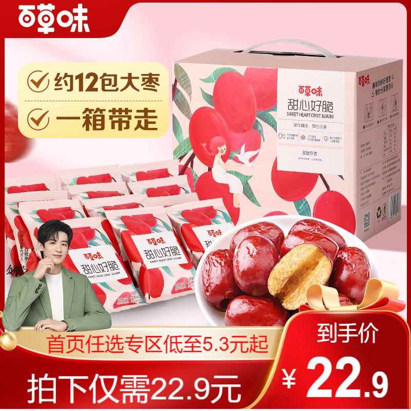 百草味甜心好脆408g香酥脆枣无核灰枣新疆红枣干特产整箱即食零食