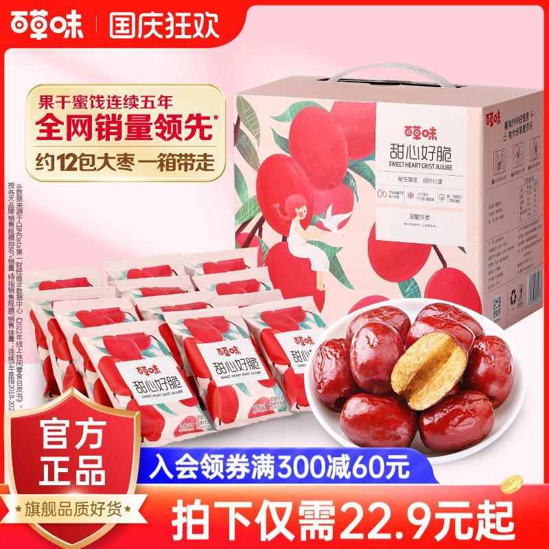百草味甜心好脆礼盒408g香酥脆枣无核灰枣红枣干休闲零食