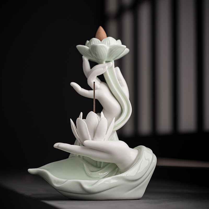 陶瓷倒流香炉禅意佛手创意家居沉香香薰炉香插盘配件摆件厂家新品