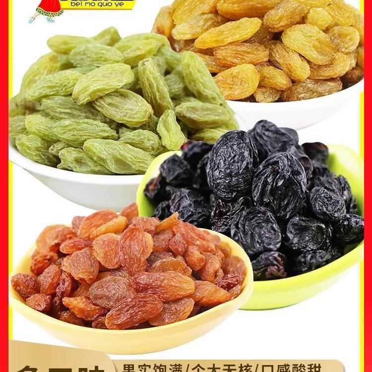 新疆特产吐鲁番黑加仑红香妃无核干净黄绿四色葡萄干大提子干500g