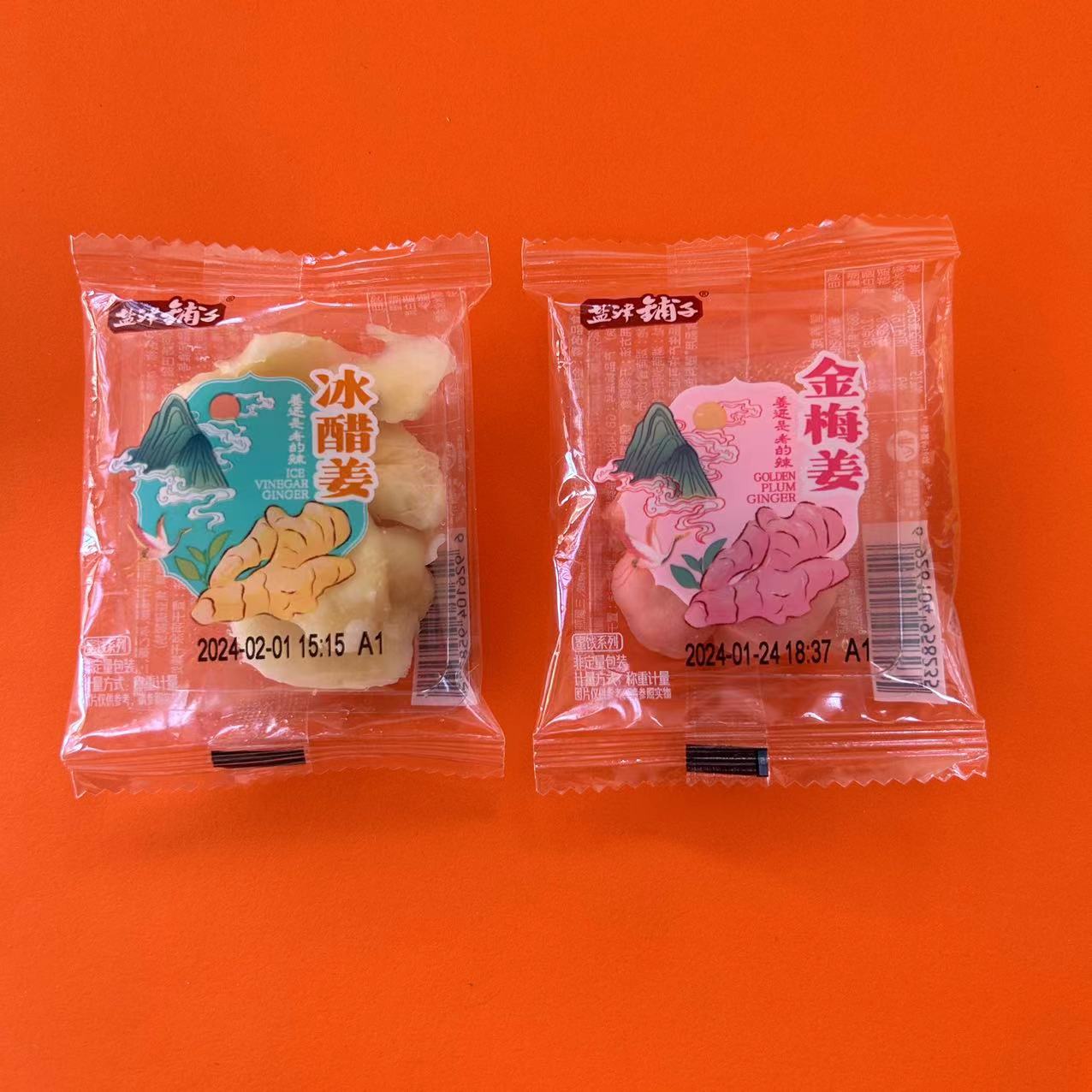 盐津铺子金梅姜冰醋姜红姜坨蜜饯冰醋姜零食湖南特产红姜片生姜丝
