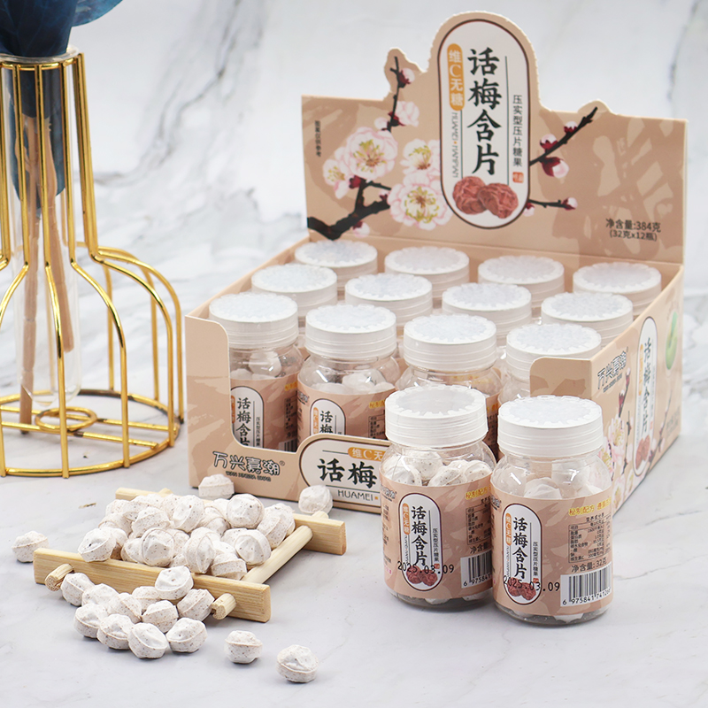 维C无糖话梅含片酸梅糖味压片糖经典怀旧酸酸甜甜休闲小零食瓶装