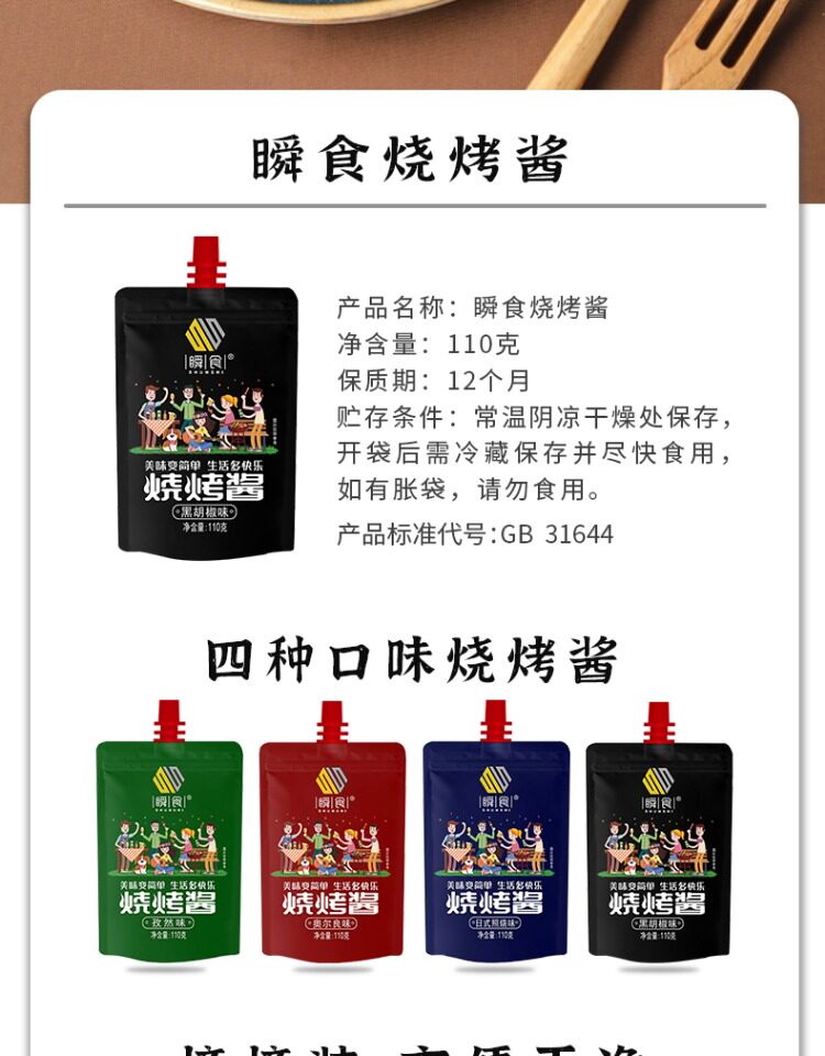 瞬食烧烤酱黑椒奥尔良照烧孜然4袋组合装