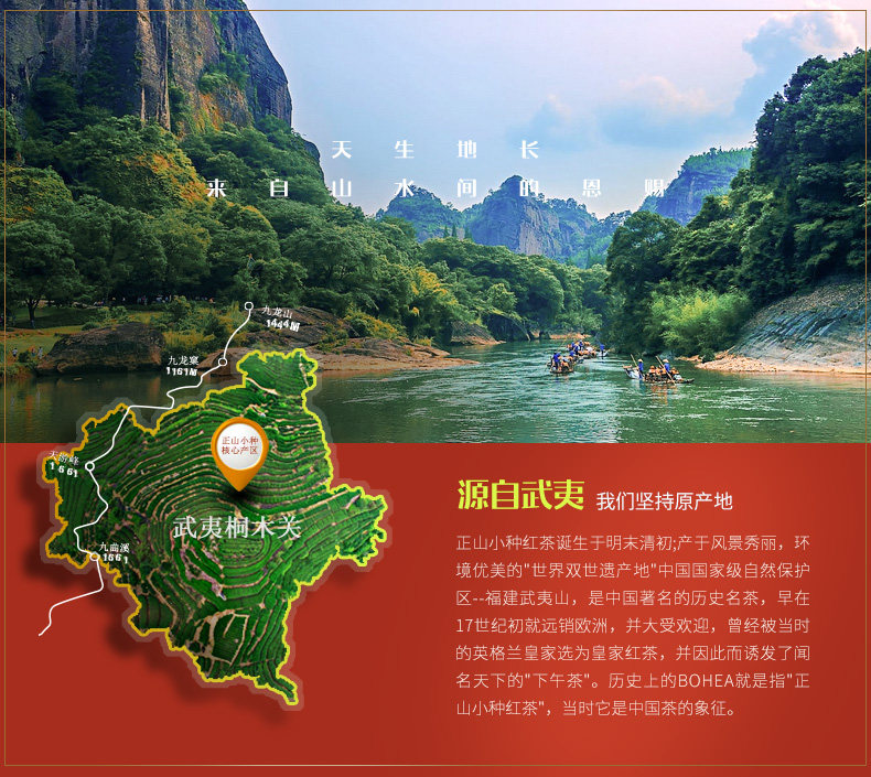 武夷山正山小种茶叶,匠心精制上等好茶,黄黑相间,茶汤金红透亮,入口醇香。正山小种红茶,口碑见证好品质,原味地道好茶!