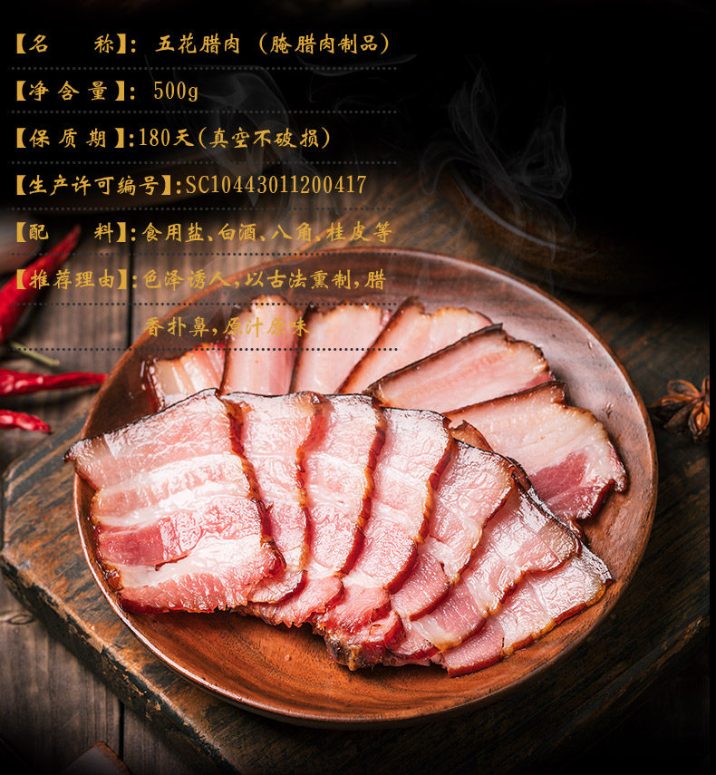 【烟熏五花腊肉】农家自制烟熏腊肉,精选优质五花肉肥瘦相间,肥而不腻。小火慢熏色泽黄里透红,肉质紧实,熏香溢口~还是真空包装哦。国家权威质检,吃得更加放心【送运费险】