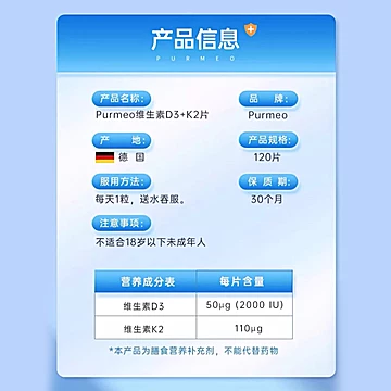 【自营】purmeo帕米奥维生素d3k2片,2000iu维他命活性25羟基备孕女