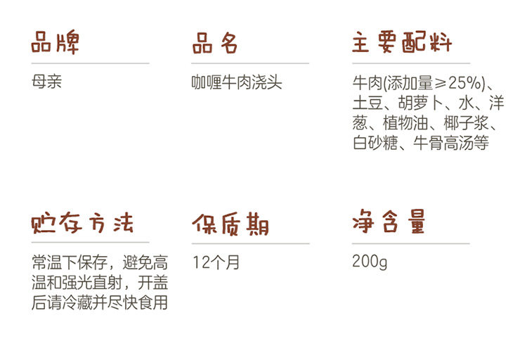 母亲咖喱牛肉浇头200g*3盒