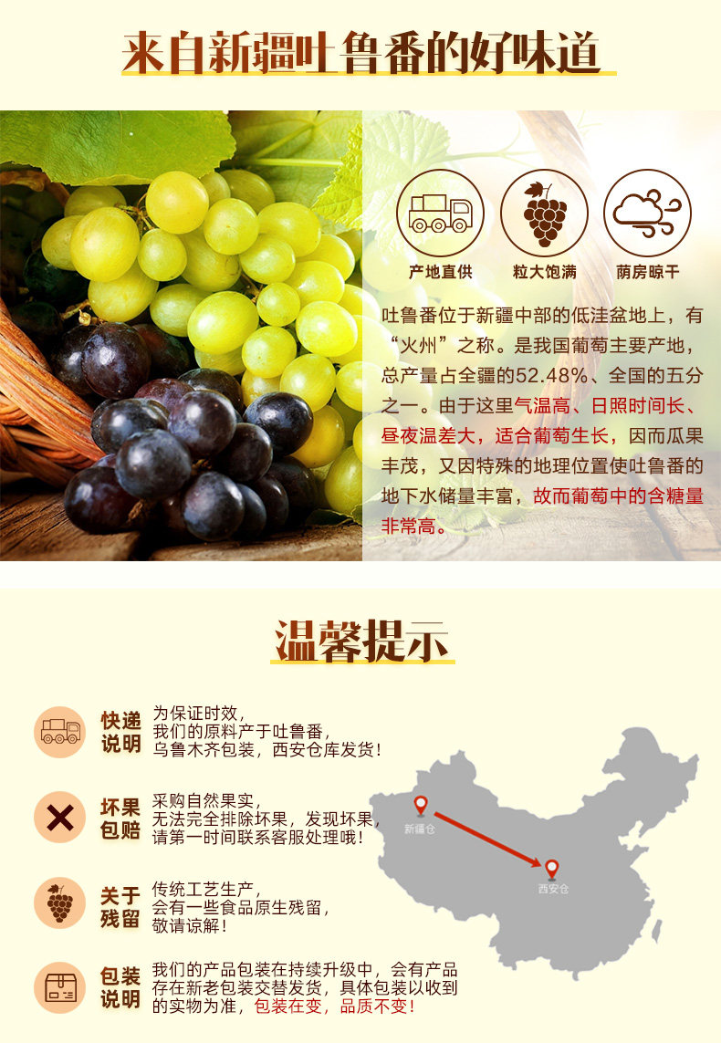 【抖音爆款】250g超值北漠果业吐鲁番树上黄葡萄干,葡萄果形饱满、肥厚,大小均匀,口感酸甜可口,有自然的清香,吃着好过瘾,快囤上!【赠运费险】