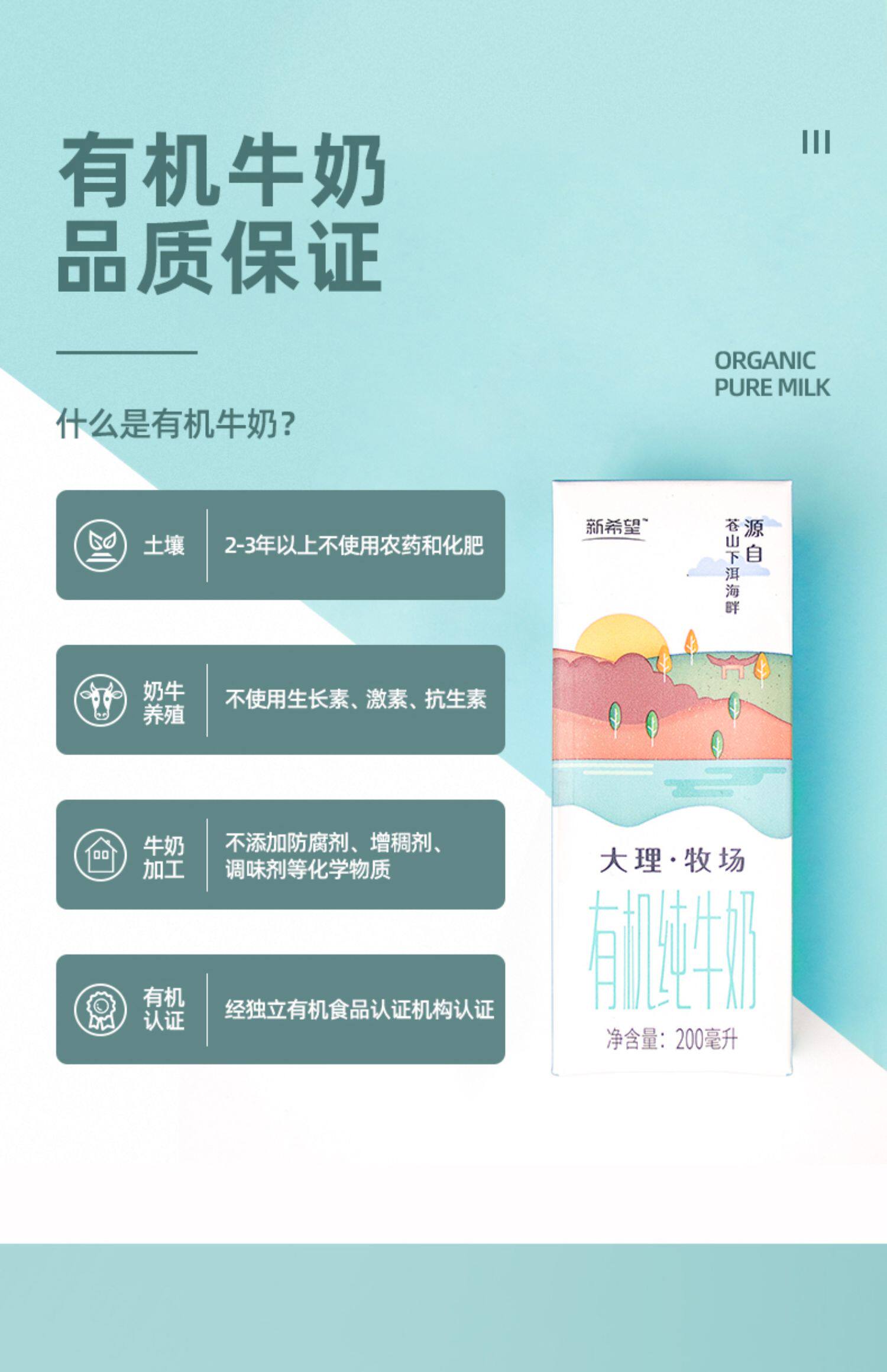 【新希望】有大理牧场有机纯牛奶200ml*12盒,源自苍山下洱海畔机生态牧场,好山好水好空气,造就奶牛自然生长环境,营养早餐奶有机认证纯奶。【赠运费险】